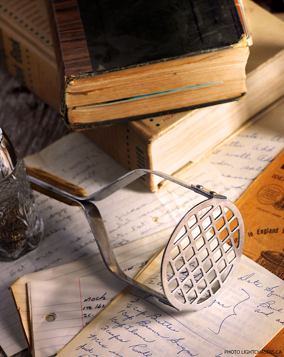 I treasure the worn cook books; handwritten recipes penned by arthritic hands, worn raw from chopping, tucked into the pages. The potato masher she gripped is tucked in the corner of my kitchen, constantly reminding me of her shepherd's pie.
